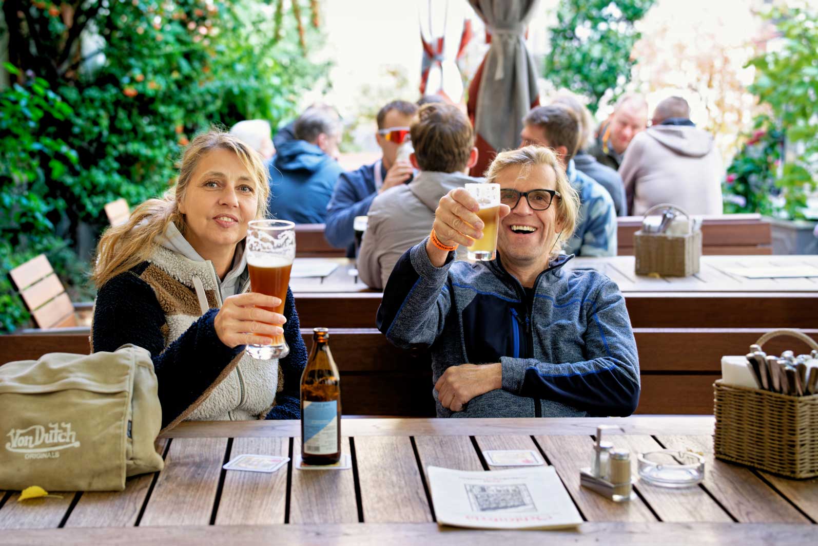 Im Ziel angekommen wartet neben unseren regionalen Bierschätzen auch Wasser, Mineralgetränke, alkoholfreies Bier, Gebäck, Obst und andere Leckereien auf dich.