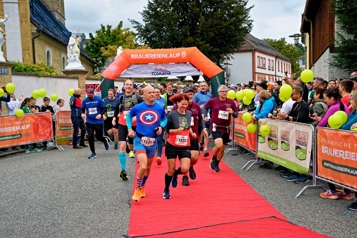 Das Highlight wartet wie immer an den Verpflegungsstationen: Hier führen Euch die örtlichen Brauereien durch ihre Vielfalt und bieten fränkische Spezialitäten, die Ihr nach Herzenslust genießen dürft. Ob auf der Strecke oder abseits der Laufwege – wir möchten mit Euch ein unvergessliches Wochenende verbringen, bei dem Sport, Genuss und fränkische Kultur Hand in Hand gehen. Seid dabei und erlebt, warum der Brauereienlauf Süd Kultstatus hat!